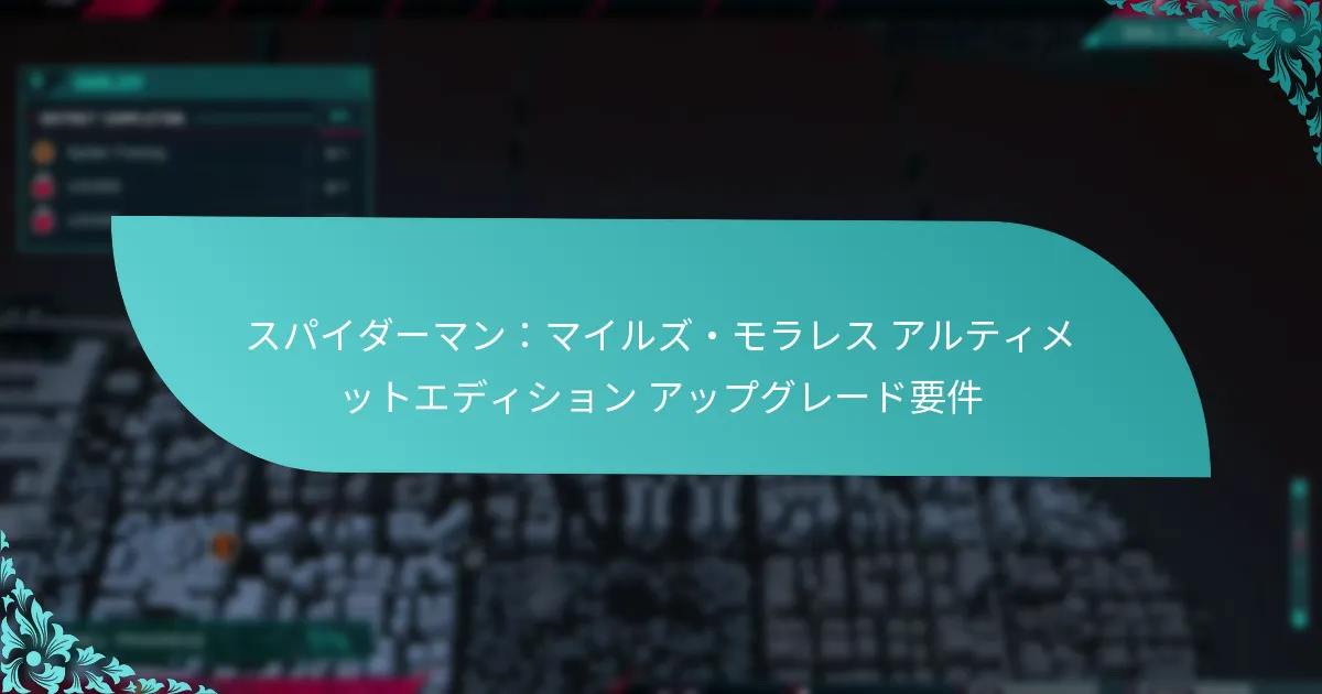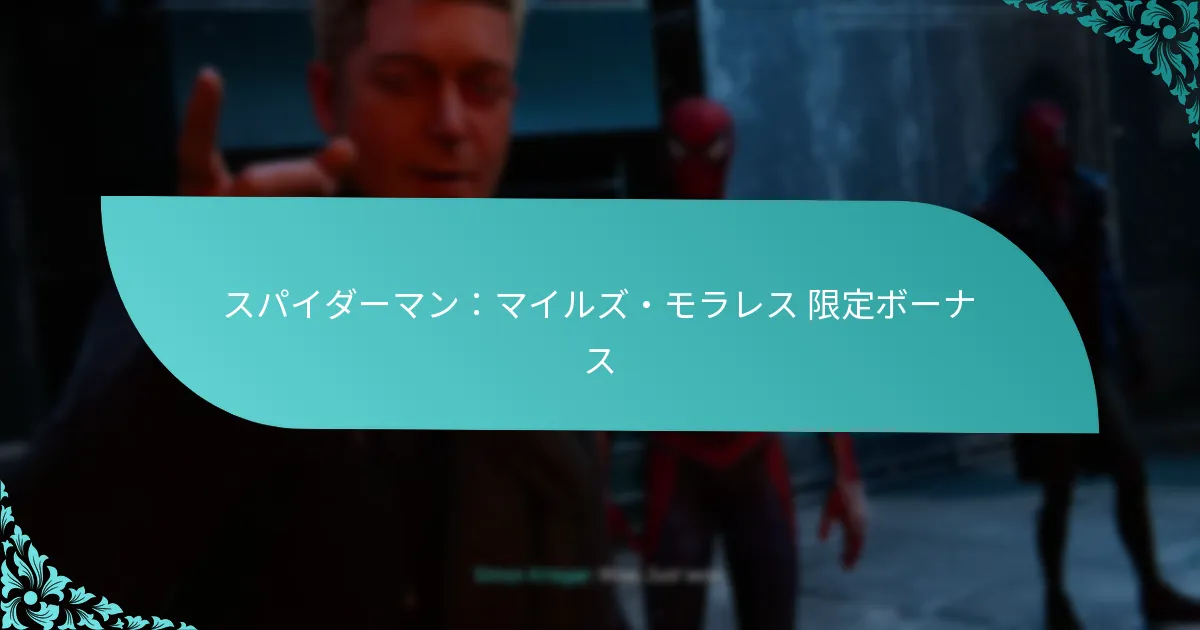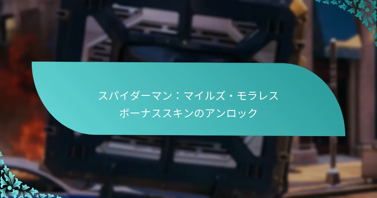 「スパイダーマン:マイルズ・モラレス」でボーナスアイテムを引き換えるには、プレイヤーは引き換えポータルにアクセスし、特定のコードを入力するという簡単な手順を踏む必要があります。これらのボーナスアイテムには、ユニークなコスチュームやパワーアップが含まれており、ゲームプレイを向上させ、より豊かな体験を提供します。引き換えの資格は、通常、購入したゲームのエディションや出版社が設定したプロモーション条件に依存します。 「スパイダーマン:マイルズ・モラレス」でボーナスアイテムを引き換える手順は? 「スパイダーマン:マイルズ・モラレス」でボーナスアイテムを引き換えるには、プレイヤーは一連の簡単な手順に従う必要があります。このプロセスには、引き換えポータルにアクセスし、特定のコードを入力し、資格を確認し、アイテムの引き換えが成功したことを確認することが含まれます。 引き換えポータルへのアクセス まず、ゲームプラットフォームで「スパイダーマン:マイルズ・モラレス」を起動します。メインメニューから、引き換えポータルのリンクが見つかるオプションまたは設定セクションに移動します。このポータルは通常、「ボーナスアイテム」または「コードを引き換える」カテゴリの下にあります。 ポータルにアクセスするには安定したインターネット接続が必要です。接続の問題が発生した場合は、ゲームやコンソールを再起動すると接続の問題が解決することがあります。 引き換えコードの入力 引き換えポータルに入ると、ユニークなコードを入力するように求められます。表示されている通りに正確にコードを入力し、大文字と小文字に注意してください。コードの入力ミスは引き換えプロセスにエラーを引き起こす可能性があります。 コードを入力した後、進む前に正確性を再確認してください。一部のプラットフォームでは、タイプミスを避けるためにコードをコピー&ペーストするオプションも提供されることがあります。 ボーナスの資格確認 引き換えを最終確認する前に、システムはあなたのアカウントがコードに関連するボーナスアイテムの資格があるかどうかを確認します。資格は、ゲームのバージョン、購入日、または特定のゲーム内要件を完了しているかどうかなどの要因によって異なる場合があります。 資格がない場合、ポータルには理由を説明するメッセージが表示されます。資格を得るために必要な手順を理解するために、提供された指示を必ず読んでください。 成功した引き換えの確認 コードが受け入れられ、資格が確認されると、ボーナスアイテムが正常に引き換えられたことを示す確認メッセージが表示されます。これらのアイテムは、あなたのゲームインベントリに利用可能になるはずです。 すべてが整っていることを確認するために、引き換え後にインベントリをチェックしてください。アイテムが表示されない場合は、ゲームを再起動するか、必要な更新がないか確認する必要があります。 一般的な問題のトラブルシューティング 引き換えプロセス中に問題が発生した場合は、まずインターネット接続を確認し、ゲームが最新バージョンに更新されていることを確認してください。時には、サーバーの問題が引き換えポータルの機能に影響を与えることもあります。 動作しないコードについては、正しいコードを入力していること、または期限切れでないことを確認してください。問題が続く場合は、ゲームの公式サポートページやコミュニティフォーラムで追加の支援を求めてください。 引き換え可能なボーナスアイテムは何ですか? 「スパイダーマン:マイルズ・モラレス」では、プレイヤーはゲームプレイを向上させ、独占的なコンテンツを提供するさまざまなボーナスアイテムを引き換えることができます。これらのアイテムには、ユニークなコスチューム、パワーアップ、収集可能なアイテムが含まれており、より豊かなゲーム体験に貢献します。 独占的なボーナスアイテムのリスト スパイダーマン2099コスチューム スパイダーバーススーツ パワーアップ:ヴェノムパンチ 収集可能アイテム:スパイダー・トレーニングトークン パワーアップ:経験値ブースト増加 各アイテムの説明と利点 スパイダーマン2099コスチュームは未来的な美学を提供し、視覚体験を向上させるユニークなアニメーションが付いています。このスーツを着用することで、ステルス能力がわずかに向上し、敵の領域を移動しやすくなります。 スパイダーバーススーツは視覚的に印象的であるだけでなく、アニメーション映画に敬意を表した特殊効果も特徴としています。このコスチュームを着ることで、プレイヤーはユニークなコミックブック風の視覚的な魅力を持つゲームプレイを体験でき、没入感が高まります。 ヴェノムパンチのパワーアップは、プレイヤーが一度に複数の敵を無力化できる強力な攻撃を解放することを可能にします